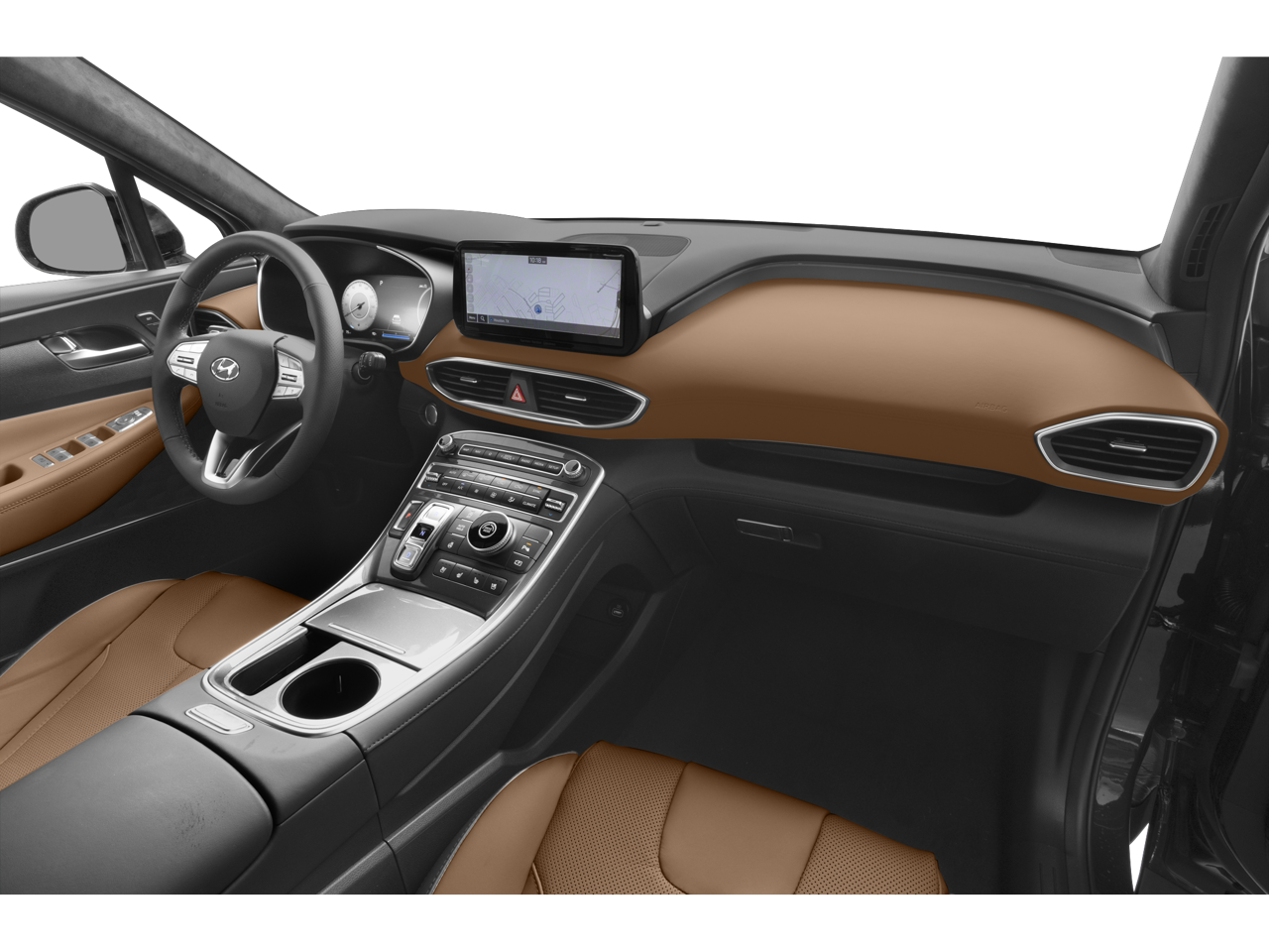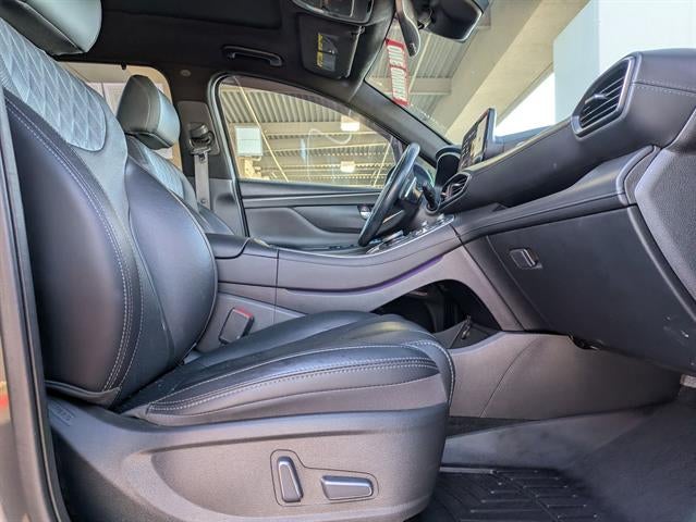 AWD, Black Leather, 12 Speakers, 4-Wheel Disc Brakes, ABS brakes, Alloy wheels, Apple CarPlay & Android Auto, Auto High-beam Headlights, Auto-dimming Rear-View mirror, Automatic temperature control, Brake assist, Bumpers: body-color, Cargo Net, Cargo Package, Cargo Tray, Carpeted Floor Mats, Delay-off headlights, Driver vanity mirror, Dual front impact airbags, Dual front side impact airbags, Electronic Stability Control, Emergency communication system, Exterior Parking Camera Rear, First Aid Kit, Four wheel independent suspension, Front anti-roll bar, Front Bucket Seats, Front Center Armrest, Front dual zone A/C, Front reading lights, Fully automatic headlights, Garage door transmitter: HomeLink, harman/kardon® Speakers, Heads-Up Display, Heated & Ventilated Front Bucket Seats, Heated door mirrors, Heated front seats, Heated rear seats, Heated steering wheel, Illuminated entry, Leather steering wheel, Low tire pressure warning, Memory seat, Mudguards, Navigation System, Occupant sensing airbag, Option Group 01, Outside temperature display, Overhead airbag, Overhead console, Panic alarm, Passenger door bin, Power door mirrors, Power driver seat, Power Liftgate, Power moonroof, Power passenger seat, Quilted Premium Nappa Leather Seat Trim, Radio: AM/FM Harman Kardon Display Audio, Rain sensing wipers, Rear anti-roll bar, Rear seat center armrest, Rear window wiper, Remote keyless entry, Security system, Speed control, Speed-sensing steering, Split folding rear seat, Spoiler, Steering wheel mounted audio controls, Tachometer, Telescoping steering wheel, Traction control, Trip computer, Turn signal indicator mirrors, Variably intermittent wipers, Ventilated front seats, Wheels: 20" x 8.0J Alloy.2023 Hyundai Santa Fe Calligraphy